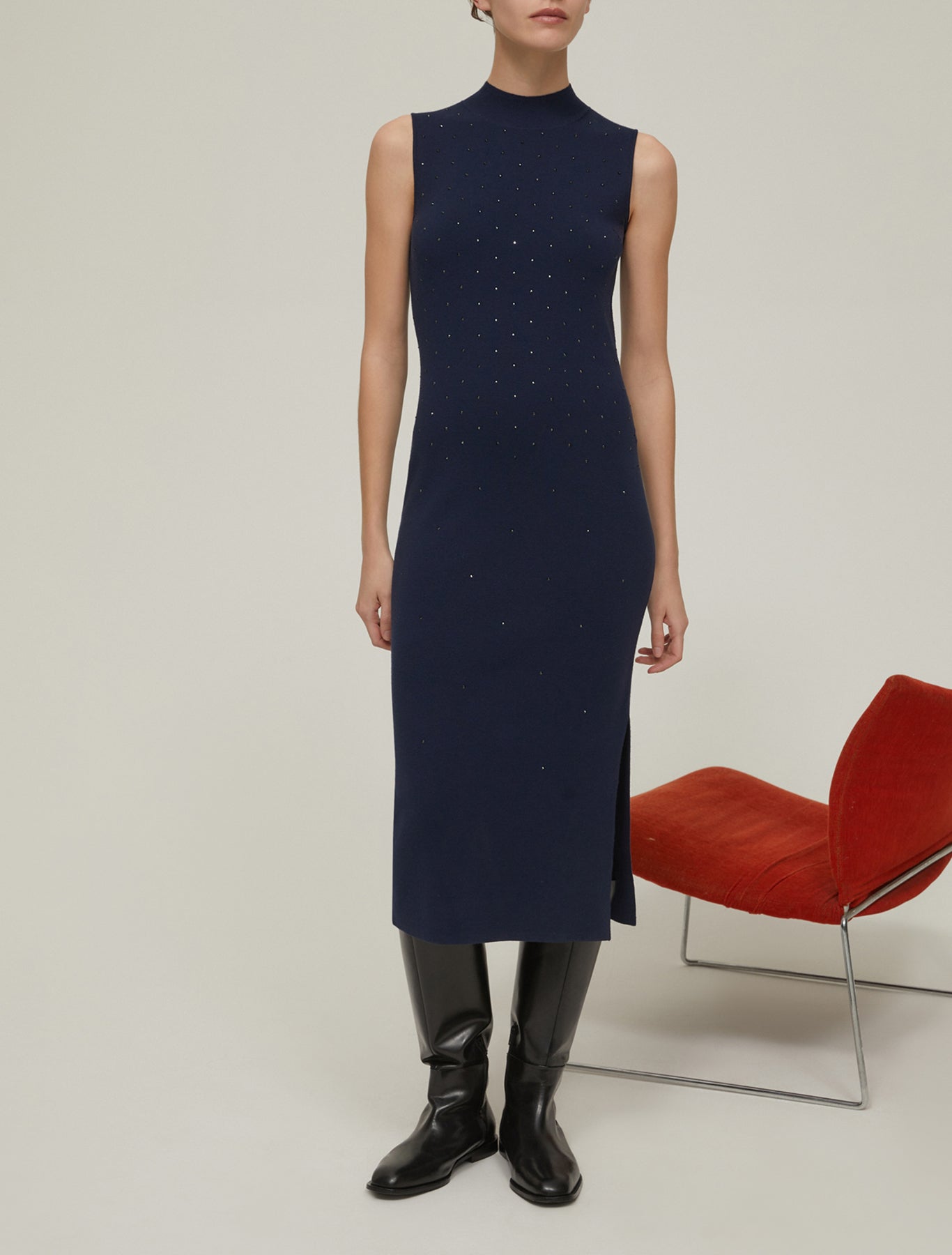 Modello: abito midi/lungo senza maniche, dal taglio dritto e aderente.