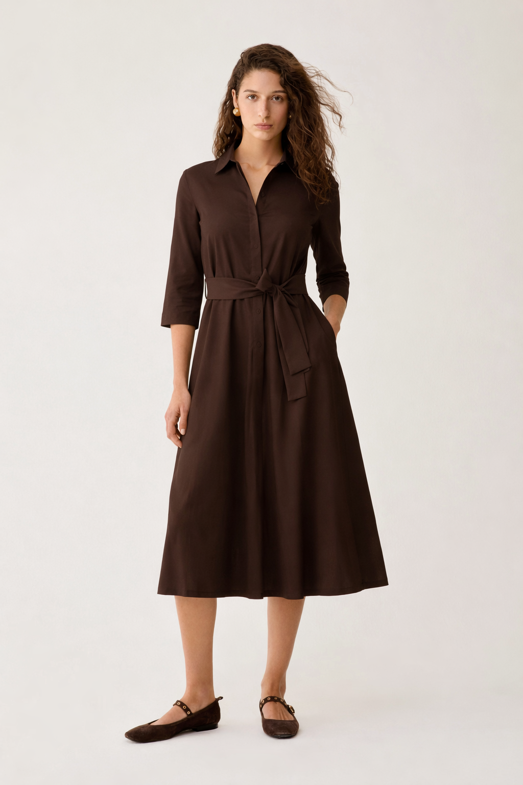 Colletto classico, maniche trequarti con spacchetti