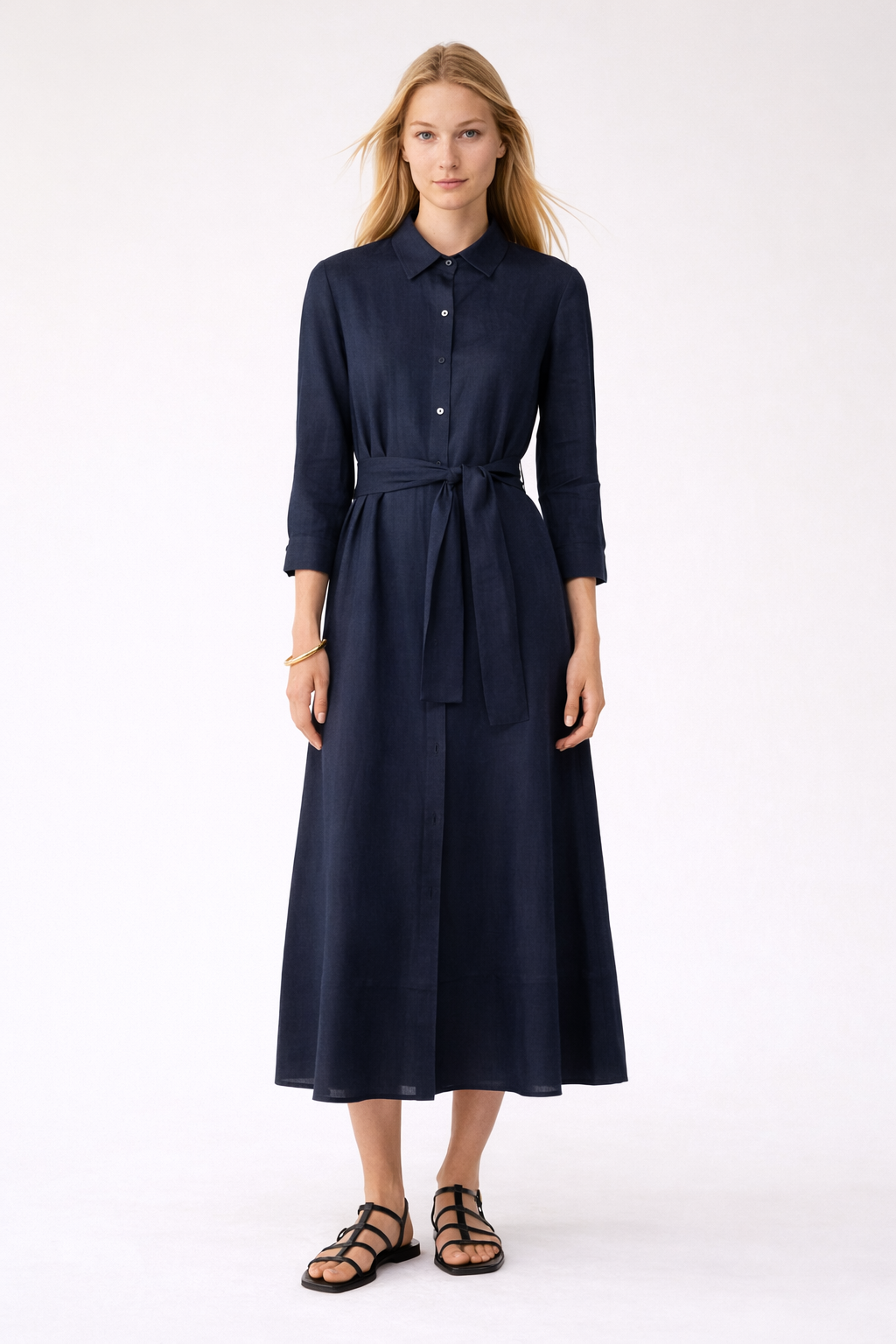 • Colletto classico, maniche trequarti, polsi con bottone