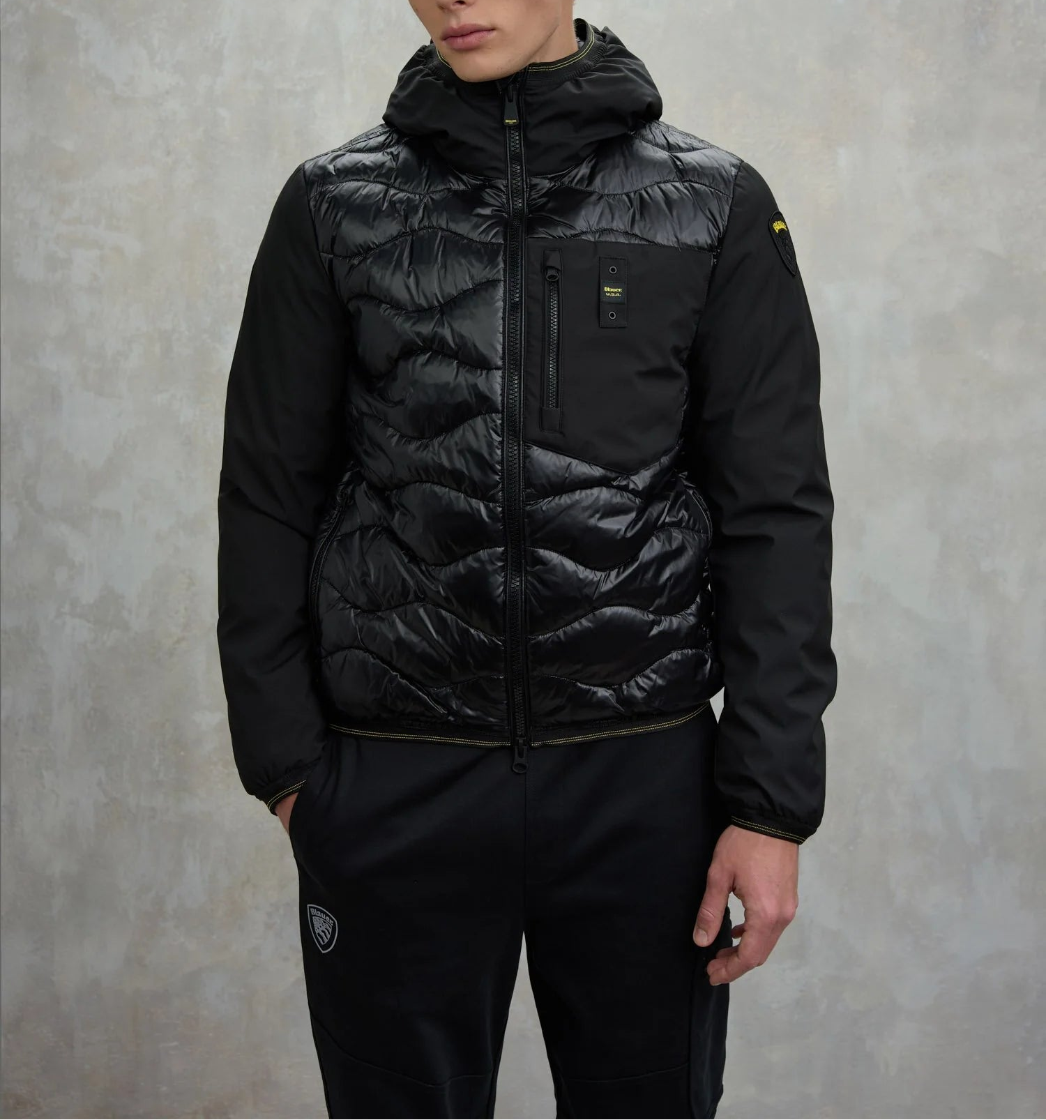 • Elastico rigato sul profilo del cappuccio, polsino e fondo.