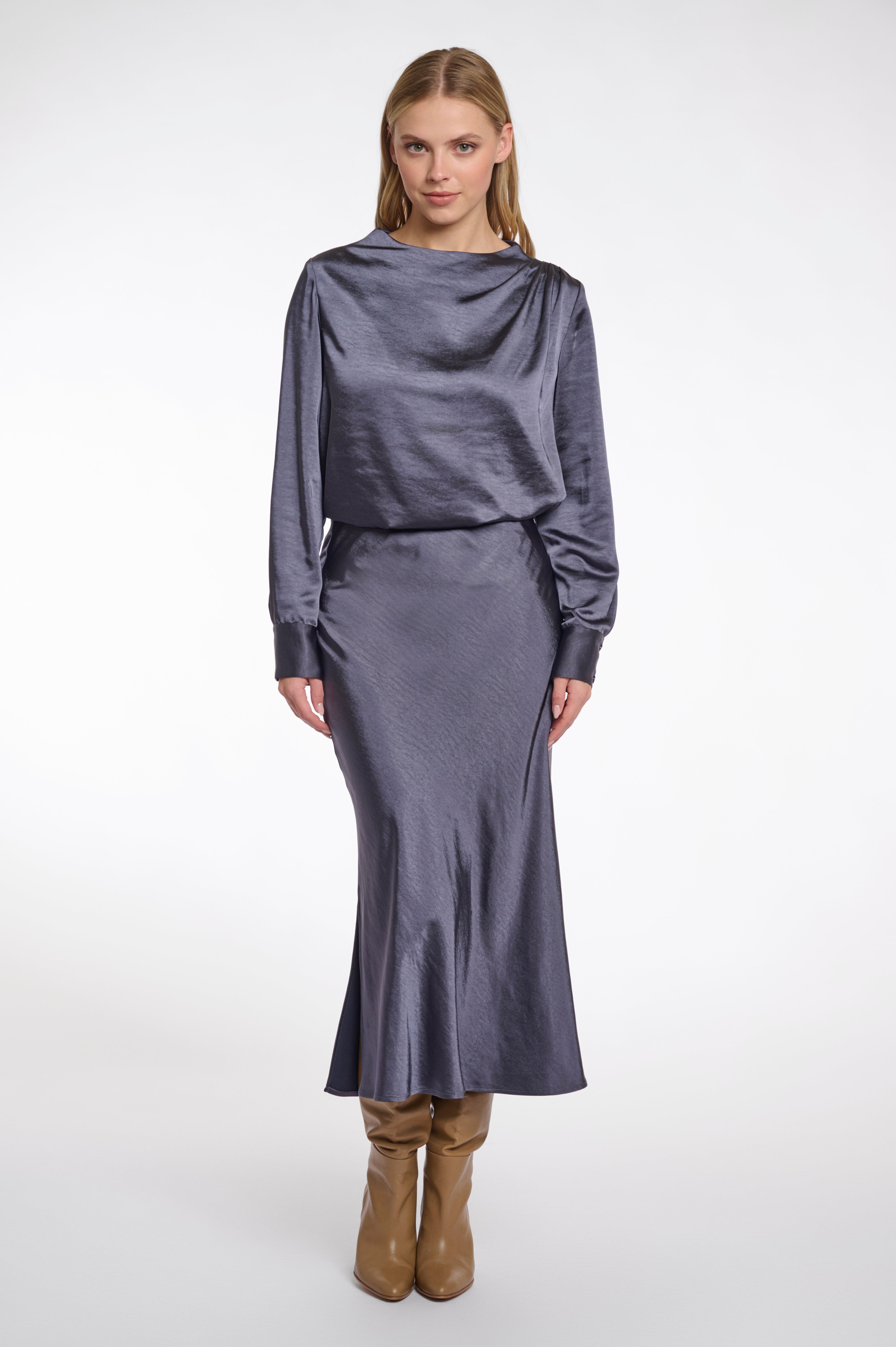• Gonna midi dall’aspetto satinato con una leggera luminosità.