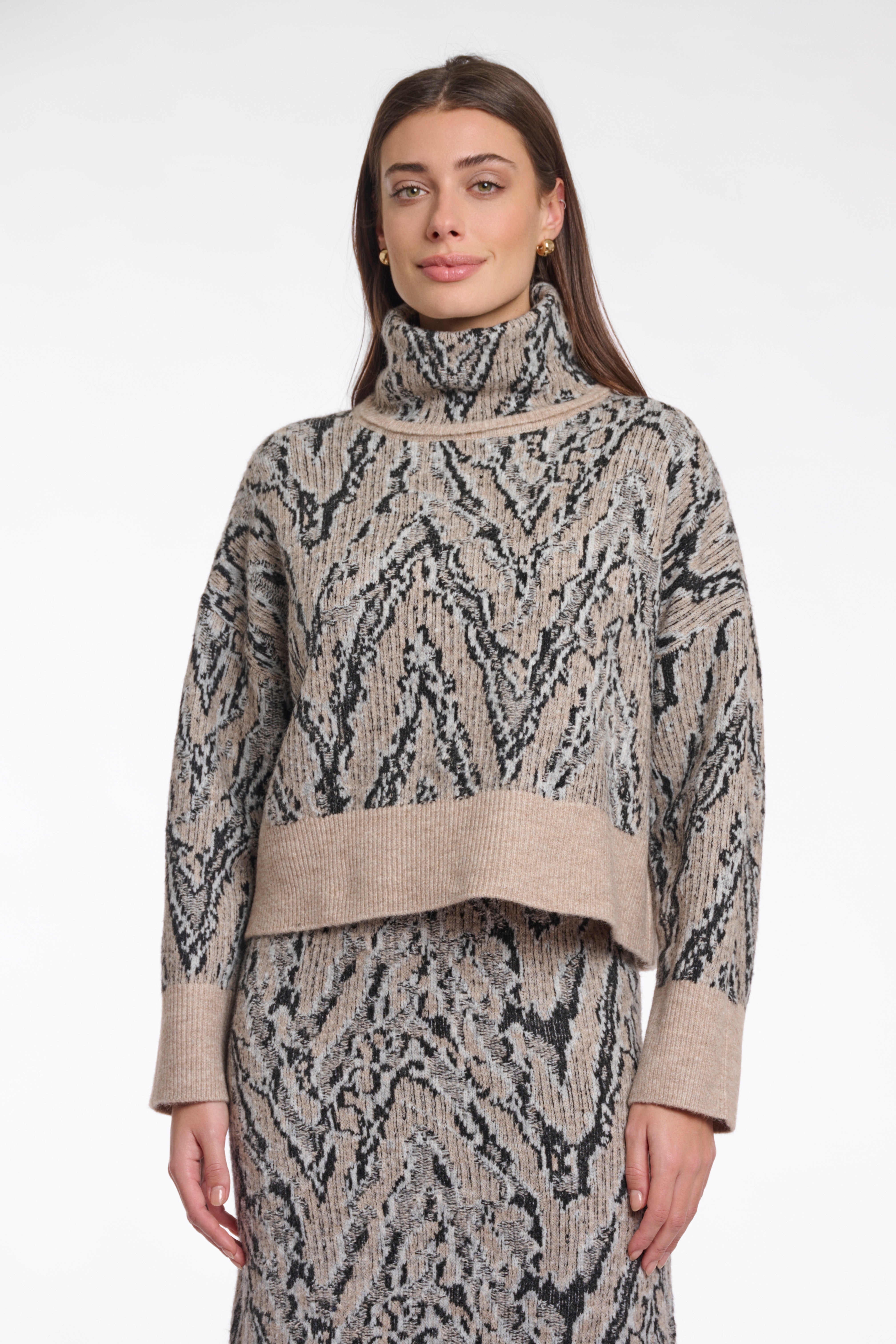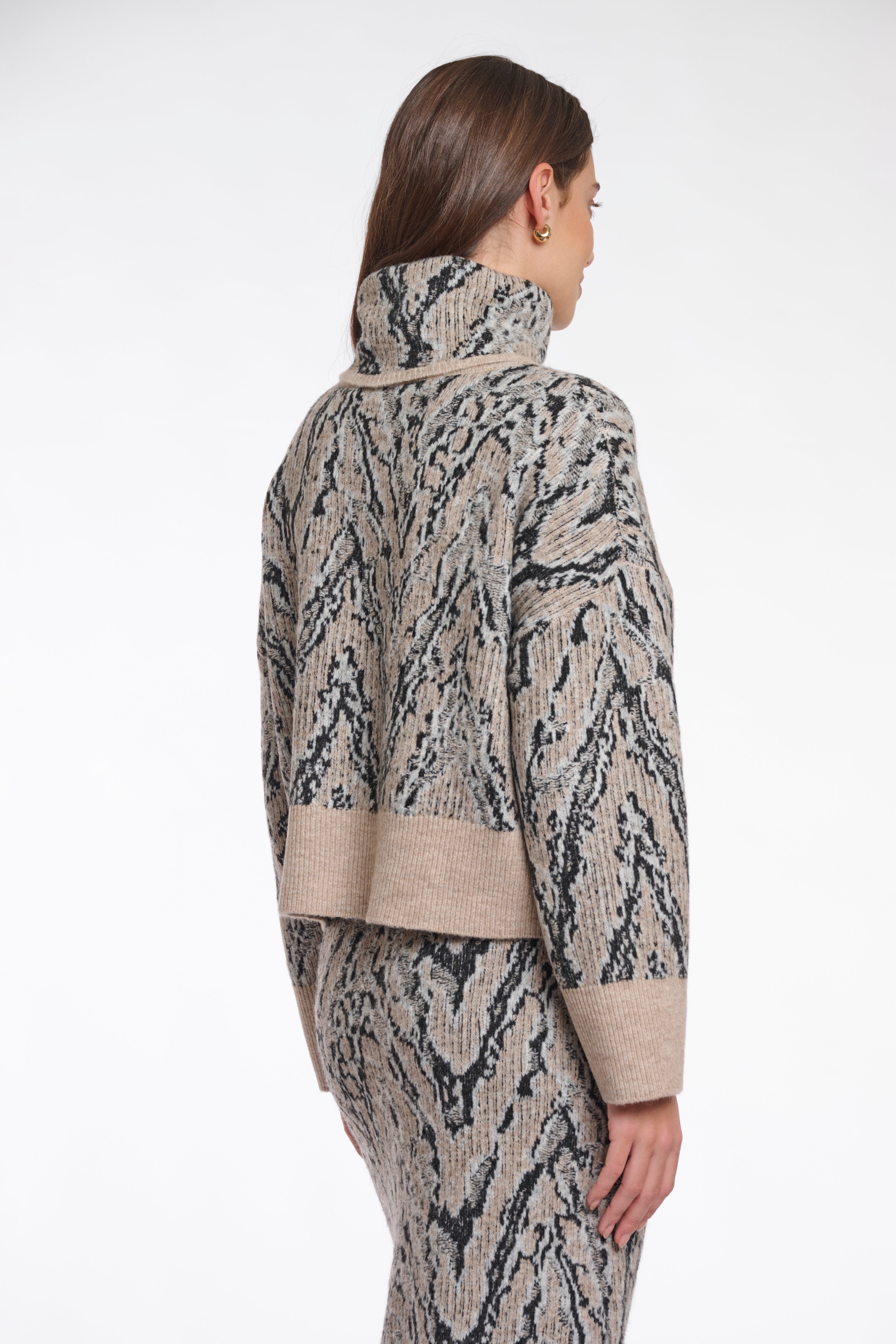 Fantasia jacquard effetto serpente nei toni del beige/cammello con dettagli neri