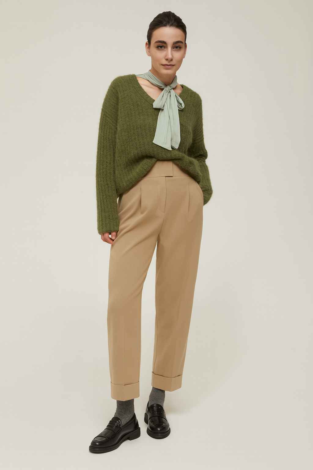 • Pieghe e tasche alla francese sul davanti